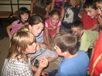 | ゲームの準備をするサマースクールの子どもたち。 |