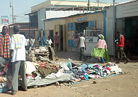 通りの向かい側にあるPK12地区の駐車場には、数十台のトラックが停車しています。隣国エチオピアへの越境手続きを待っているのです。