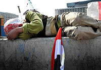 | 大規模の中心部、カイロのタハリール広場で眠る子ども。 |