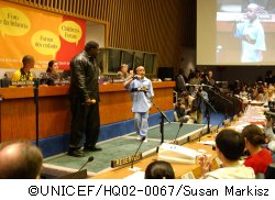 「子どもフォーラム」の閉会式では、特別総会に向けて世界中で行われていた「セイ・イエス・フォー・チルドレン」キャンペーンで集まった署名数が発表されました。その数、9400万以上。署名は「子どもを一人として差別しない」「子どもへの虐待や搾取をやめさせる」など子どもにかかわる10の約束に賛成することを示したものです。世界のおよそ60人に1人は子どもたちとの約束を守りたいという思いを表したことになります。