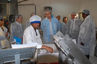 御法川政務官は、同行した駒野欽一在エチオピア日本大使、ユニセフ・エチオピア事務所のビヨン・ルングヴィスト代表と共に、工場の責任者ベレテ・ベイェネ氏の案内を受けて、工場を視察して回りました。