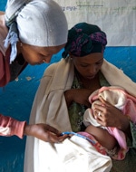 2011年のエチオピアの人口・保健統計によると、5歳未満の子どもの死亡率は、過去10年間で1000人あたり166人から88人に半減しました。エチオピアは、ミレニアム開発目標の一つ(4番目)である2015年までに子どもの死亡率を3分の2にするという目標の達成に近づきつつあります。基礎保健サービスの実質的な規模の拡大は、この目標達成を後押しすることになるでしょう。