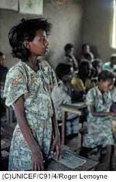 サミア、ルソ、そして、そのほかの女の子たち、みんなが「女の子の教育」の実現を目指して頑張っています。2001/2002年には、全国レベルでの小学校総就学率は61.6%で、51.2%が女の子、71.7%が男の子でした。2005年までに小学校・中学校で男女の格差をなくそうという世界的なキャンペーン「2005年までに25カ国を」が、ユニセフの主導のもとで展開されていますが、エチオピアはその25カ国のひとつに入っています。