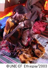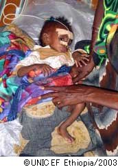 2003年、ユニセフは保健省、NGOや支援団体の約900人の医療従事者に対し、深刻な栄養不良の管理について訓練をしています。急性栄養不良についての新しい基準となる治療要領や治療についての研修内容はユニセフのコンサルタントであるマイケル・ゴールデン教授によって作成され、2003年6月にエチオピア政府に採択されました。