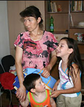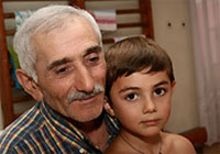 | 南オセチア自治州とアブハジア自治共和国周辺で避難を余儀なくされている人々の多くは、幼稚園や学校に避難しています。トビリシにある「希望」幼稚園に避難しているダト君(8歳)と祖父。 |