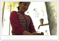 | グルジアのゴリ近郊に建つトルティザ村学校で、ユニセフとIRCの支援で設置された蛇口から出る水を使う女の子。 |