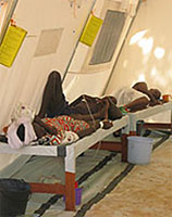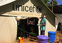 患者で溢れかえる中央病院を助けるため、ユニセフは、患者を収容できるテントを提供。一人でも多くの患者にベッドを確保し、より安全な衛生施設(トイレ)も提供しました。