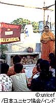 ある小さなビルの3階に案内された。6畳くらいの室内には十数名の女の子が床に座って刺しゅうを習っていた。13歳から15歳くらいの思春期の女の子たちである。彼女等の母親は全て性産業従事者だ。女の子たちはここで生まれ、育ち、小学校ですら通っていない。この地区の外に出ることも限られているという。ユニセフは現地のNGOと協力して性産業従事者の子どもたちに読み書き、簡単な計算、そして生活していくのに必要な知識や技術を教えている。刺しゅうも腕をみがいて少しでも良い収入の道を得て親の生き方を踏襲しなくても済むようにという狙いからだ。