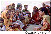 ミニはユニセフのすすめる女性開発事業に携わっています。ビハール州でのユニセフの女性開発事業はNGOの協力によってすすめられているのです。ユニセフは、貧しい女性たちが自分たちに自信をもち、社会に認められる存在になっていくよう支援しています。