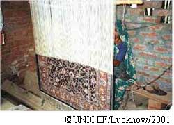 ウッタルプラデシュ州は社会経済的に立ち遅れていますが、輸出向けじゅうたんの85%がここで生産されており、織機も15万台を数えます。字の読み書きのできない人が多く、貧困と負債が深刻で、おとなの失業率が高いために、子どもが働きに出ざるを得ません。また、じゅうたん業界はもともと規制の届きにくい形態で製造が行われており、それも子どもを労働力に使う要因になっています。