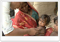 | 2008年に起きた大規模な洪水に襲われたインドのビハール州は、世界的な経済危機の影響も受け、幼い子どもたちは非常に高い栄養不良のリスクに晒されている。 |