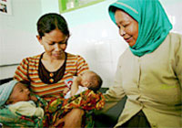 2007年、地元の助産師と伝統的な助産婦の協力が、“インドネシア妊産婦保健改善”プログラムにより進められました。
