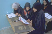| バスラから南へ40kmにあるアカッド小学校。(2003年撮影) ユニセフは、武力衝突の中でも、イラクの子どもたちが学校で、基礎的教育を終了して、ライフスキルを身につけられる場所であり、子どもの安寧の場所であり続けるように努力しています。 |
