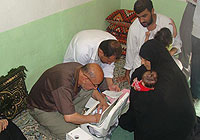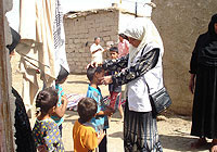| 予防接種週間中、保健スタッフに病気の簡易診療を受けている子どもたち。イラクのほとんどの子どもたちは、予防接種に限らず一般的な保健サービスを享受する機会がほとんどありません。 |