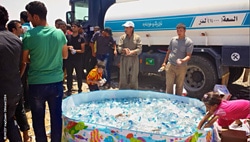 | ドホークの検問所の様子。ペットボトルの水の配給。 |
