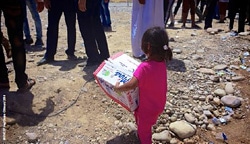 | ドホークの検問所の様子。配給されたペッ トボトルの水を持ち帰る女の子。 |