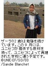 ユニセフは、今年9月に約400万人のイラクの子どもたちを学校へ復帰させるために、過去最大の教育支援事業に乗り出しました。この支援事業は、教育省、連合軍占領当局(CPA)、NGOなどのパートナーと連携した全国的なキャンペーンの一環として行われます。壊れた学校1000校を修復することが目的ですが、その規模は、どれだけの援助資金が集まるかで変わります。