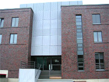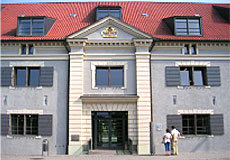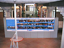 そしてこちらがJ8サミットのメイン会場Zeughaus。以前は武器庫だったこの建物は、今は市の図書館として地元の人々に親しまれています。中に入ってみると、入り口には昨年ロシアで行われたときのJ8サミットの写真がずらり。市全体がJ8サミットの開催を大歓迎してくれていることがわかります。