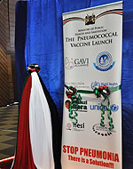 | ケニアでスタートした肺炎球菌の予防接種キャンペーンの式典で展示された、新ワクチンの世界キャンペーンのバナー。 |