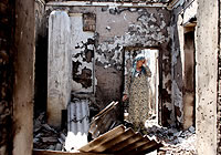 | キルギス南部にあるオシのチェリョムシュキ地区にある焼失した自宅に立つミッシリョ・イスマノバさん。この地域は、最近の民族間衝突で最も激しい影響を受けた地域のひとつです。 |