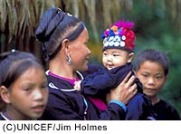 | ラオ・ホーエイ民族は人里離れた地域に住んでおり、その地域は予防接種チームが出向いていくのもむずかしいところです。 |