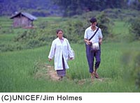 ソムサナ博士は、予防接種プログラムを強力に支援してくれた協力機関— 国際協力事業団(JICA)、世界保健機関(WHO)、ユニセフ— に感謝しています。これらの機関の協力のおかげで、ラオス人民民主共和国政府は1993年以来、予防接種の接種率を3倍に上げることができたのです。