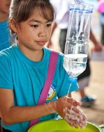 | 首都ビエンチャンで、世界手洗いの日を祝うイベントに参加する女の子。 |