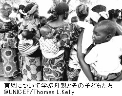 ユニセフは、この社会混乱が長引くリベリアで支援を続け、支援プログラムのひとつとして母親向けに幼児ケア・クラスを避難民キャンプで開いてきました。リベリアでは18歳未満の10代の女子のうち、4人に1人は子どもがいるとされています。しかし、紛争のなかで育った母親たちは、避難民キャンプで育ち、教育をほとんど受けていないため、母親たちは子どもの育て方を知る人は多くありません。