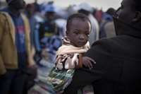 混乱が続くリビアから、隣国のチュニジアへ避難してくる人々と移民労働者の高まる流出を懸念して、ユニセフは、リビア西部と東部の国境にスタッフと支援物資を動員し、支援を行っています。