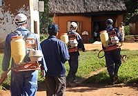 | 肺ペストの報告を受けた農村部タラタヴォロノンドリーで消毒キャンペーンを行う、マダガスカルの衛生事務所のスタッフ。 |