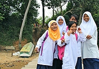 | ユニセフが支援する教育センターに通学する少女たち。この学校は、サバ州カンプン・ヌンバク村の登録していない子どもたちを受け入れている。かつては、出生登録がない子どもは学校に通うことができなかった。 |