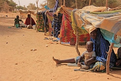 | マリとニジェールの国境から100キロ離れたニジェールの村に避難したマリの人たち。わずかな持ち合わせのもので作ったこの一角で生活をしています(2012年2月撮影) |