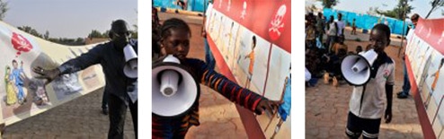 全国放送や地方向けのラジオ番組で、命を守るためのメッセージが5つの言語で訴えられています。また、ユニセフは、マリの芸術家の協力を得て、啓発のためのポスターや資材作りも支援しています。