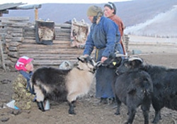 | ムルンちゃん(9歳)は、毎日家畜のヤギの世話をしている。モンゴル北部のフブスグル地方に暮らす人々は、地理的に孤立。貧しい生活を強いられている。殆どの家庭で、家畜の世話は、子どもたちの役割だ。 |