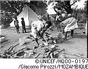 アデリアとアウグストの住むモザンビークは、今年2月の洪水によって大きな被害に遭いました。10万人以上の人々は家を追われ、そのうち2万2千人は5歳未満の子どもでした。何万人もの避難民が身を寄せるチハケラネキャンプの栄養センターでは、アウグストのような重度の栄養不良の子どもたちが80人近くおり、センターがオープンした最初の一週間で、5人の子どもが栄養不良のために命を落としたといいます。