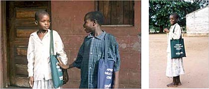 | マニカ州タンバラ地区/12歳の孤児、チカ・ジョアンはユニセフから贈られた通学カバンを誇らしげに持っています。(C) UNICEF Mozambique/RuthAyisi/2003 |