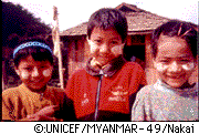 ユニセフはミャンマーで、カイカイのような母親が無事に出産できるよう、また、ザユのような子どもが健康で5歳の誕生日を迎えられるよう、支援している。物資による支援だけでなく、保健員や助産婦の訓練や、保健と衛生の知識を広める活動が重要だ。水源保護と安全な水の確保のために、衛生的なトイレの建設指導や重力流式給水システムの設置も行っている。1997年には3歳以下の子ども4万人に結核やポリオなど6種の予防接種を、妊娠出産年齢の女性9万人以上に破傷風の予防接種を行った。