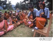 シュリーシタラ中学校が参加校として選ばれると、地域監視管理事務所(RSMO)の社会学者、プレム・ニティさんが校長先生を手伝い、年齢、性別に関係なく参加できる子どもクラブを設立しました。またニティさんはトイレと公衆衛生、リーダーシップおよび子どもの権利に関する研修も行いました。学校運営委員会、校長、教員や地域の指導者などを対象にして追加の研修も行われ、子どもたちの取り組みを指導・支援する方法が教えられました。RSMOやユニセフからの経済的・技術的支援、また地域コミュニティの貢献によって同中学校には新しく男女別々の常設トイレが備え付けられました。トイレの建設が終わると、子どもクラブは清掃日課を設けて、生徒全員で責任を持つようにしました。きれいでいやなにおいのないトイレのおかげで、急にトイレに行きたくなってももう困りません。子どもたち、とりわけ女の子はプライバシーが守られて喜んでいます。子どもたちはまた、研修を通じて、トイレがきれいな環境を保つ上で大切な役割を果たしていることを知り、それが健康状態の改善にもつながるということを理解するようになりました。新しい自信と若い意気込みで、子どもクラブのメンバーは学校では石けんによる手洗いキャンペーンを、コミュニティではトイレの利用を促す運動を始めました。