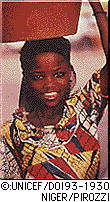 そこでユニセフは1999年12月から、オーストラリア国際開発庁と共同で、ニジェールの少女の結婚平均年齢を上げることによって少女たちが教育を受けられるようにすることを目的としたプロジェクトを行っています。第一歩として、それぞれの地域の指導者や宗教的なリーダーなどに地元の人々を集めてもらい、少女の低年齢結婚とその影響について、劇や歌、スピーチなどで説明しました。