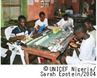 彼が帰るとお母さんは大喜びしましたが、ほかの3人の兄弟もまた家を離れ、同じような状況に置かれています。イヤングは今、ユニセフが資金援助しているNGO、MELPWOODに通っています。MELPWOODでは、子どもたちが自ら生計を立てられるように、また、人身売買や搾取の危険性に気づくように、イヤングのような孤児や社会的に弱い立場に置かれた子どもたちに、裁縫や編み物、石鹸作り、料理などの職業訓練を行っています。MELPWOODはまた、このプロジェクトに参加する55人の子どもたちが学校に通えるよう、経済的な支援も行っています。