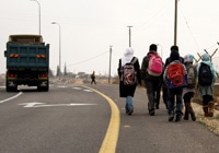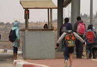 | パレスチナ人自治区の“シーム(縫い目)ゾーン”にあるアシーファーで暮らす子どもたちにとって、15分の通学時間が、検問所で待たされて1時間になることも多い。 |