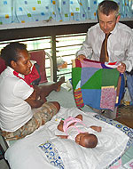 「Unite for Mothers(母親たちのためにエイズと闘おう)」キャンペーンでは、HIV/エイズのほかにも、肺炎、脳マラリア、結核、髄膜炎などの病気に苦しむ子どもたちにも毛布が贈られました。ユニセフ・パプアニューギニア事務所代表のバードランド・デムーラン博士は、自ら子どもたちへ毛布を手渡し、次のように述べました。「私達は、妊産婦死亡率を低減し、HIV母子感染を予防するために活動しています。これは、まず親の間での感染を防ぎ、そして母子感染を防ぐということから始めなければならない、ということです。」