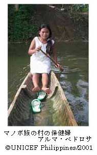 この第8地区に住む23才のアルマ・ペドロサは、ボランティアで村の保健婦(BHW)を務めています。第8地区のほとんどの住民がそうであるように、アルマもアグサン州に住む5つの原住民族の1つであるマノボ族の生まれです。
