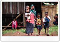 地元の役人や村人、保健員たちは、「平和の日」キャンペーンのスタートに備え、力を合わせて対象コミュニティの意識啓発と意欲向上に取り組みました。キャンペーン期間中、アルプイ氏ら一行はミンダナオ島の遠隔地帯の村々を訪問。中には、不安定な治安のために定期予防接種を一度も受けたことがない子どももいました。