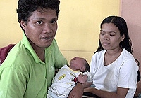 | ブラカン総合スポーツ体育館に避難を余儀なくされたルエナードちゃん(生後16日)と両親。 |
