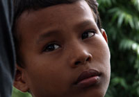| ロイさん(仮名、10歳)は、台風「ワシ」による洪水被害で、家族と離れ離れになった。現在、フィリプンのイリガン市にある避難センターで、救援スタッフのケアを受けている。 |