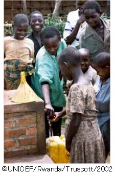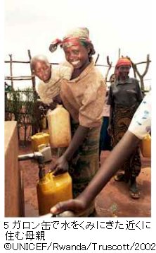恩恵を受けた人びとは、ユニセフが支援したこのプロジェクトのおかげで生活ががらりと変わったと話します。12歳のジャネットは、タンザニアとの国境に続く道から少しはずれた小さな村に住んでいます。村には8km離れた泉から水が引かれ、約300世帯が2つの蛇口を共同で使用しています。ジャネットはそれまで毎日2時間かけて家で使う分の水を川から汲み、ポリ容器で運んでいました。水道が引かれてからはその2時間をどうしているの、と質問されると、彼女は恥ずかしそうに、でも顔いっぱいに笑みを浮かべて、「学校に通っているの」と答えました。