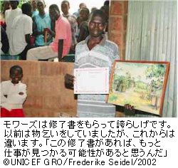 若者たちに渡される修了書は、教育省によって承認されたものです。ユニセフは、トゥバクンデの修了書が教育省によって認定されるよう尽力しました。