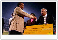2010年のFIFAワールドカップでホストを勤める南アフリカが初めて開催した、FCバルセロナと地元のチーム、マメロディ・サンダウンズとの親善試合。ハーフタイムには、世界最大級の金鉱山会社のひとつ、アフリカレインボーミネラルズ社のモトセペ会長から、ユニセフ南アフリカ事務所に75万ランド(約10万7000ドル)の募金の小切手が手渡されました。こうした「地元企業」による寄付は、南アフリカにおけるユニセフの歴史の中でも、前例の無い出来事でした。