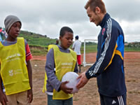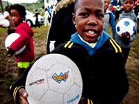 一般財団法人TAKE ACTION FOUNDATIONは、ユニセフが南アフリカで、アフリカ最大のスポーツ専門放送局『スーパー・スポーツ』と行っているLet’s Play a Millionプロジェクトのオフィシャルサポーターです。プロジェクトでは、サッカーを通じて子どもたちに必要な知識をつけてもらおうと、施設や資材が整っていない学校に、2010年までに100万個のサッカーボールを配布することを目指しています。一般財団法人TAKE ACTION FOUNDATIONは、2009年4月に山梨で開催された「TAKE ACTION FOUNDATION in 甲府 LIFE AFTER FOOTBALL MATCH」による収益の寄付を通じて、これまでに、20,000個のサッカーボールの配布を支援しています。